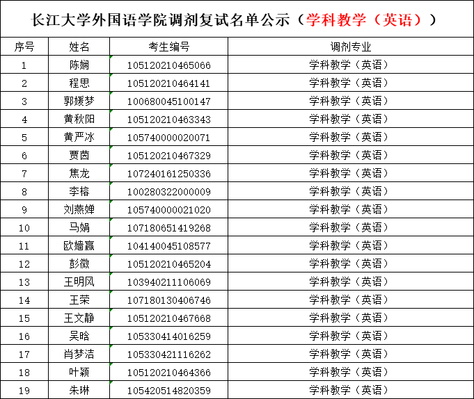 【调剂复试名单公示】太阳成集团tyc234cc调剂复试名单公示(学科教学(英语))