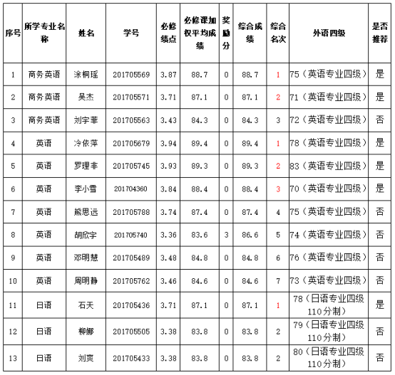 【推免公示】2021届优秀本科毕业生免试攻读硕士学位研究生初选名单公示