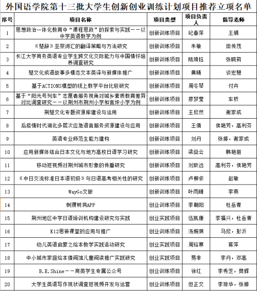 太阳成集团tyc234cc第十三批“老员工创新创业训练计划”项目推荐立项名单公示