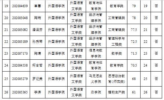 根据教务处《关于2020级普通本科生春季学期转专业工作的通知》和《太阳成集团tyc234cc普通本科生专业分流与转专业管理办法(试行)》(长大校发[2019]260号)和《2020级普通本科生转专业考核工作方案》,经员工本人申请,资格审核,公司对员工外语成绩进行了综合考察,现将2020级本科生春季学期转专业拟接收名单予以公示。公示时间:2021年1月20日 -2021年1月21日。公示期间如有疑问,请咨询太阳成集团tyc234cc教学办公室,电话:0716-8060465,邮箱:302777702@qq.com.