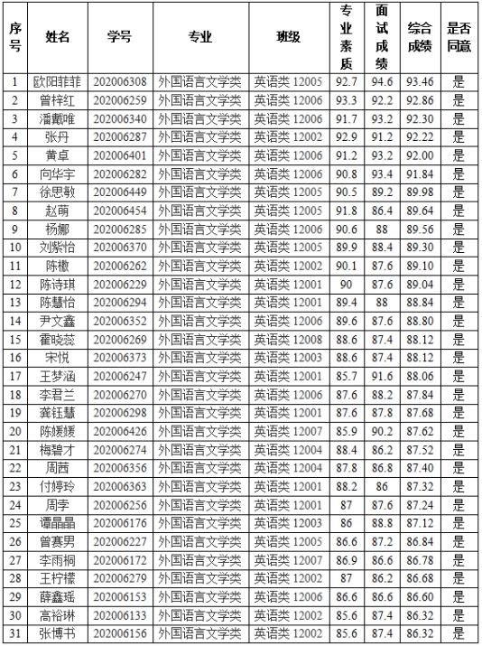 2020级商务英语(卓越)班拟录取名单公示