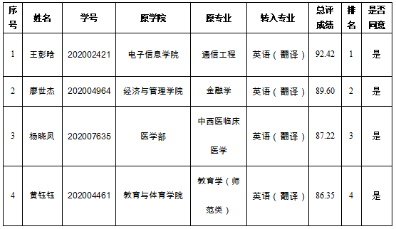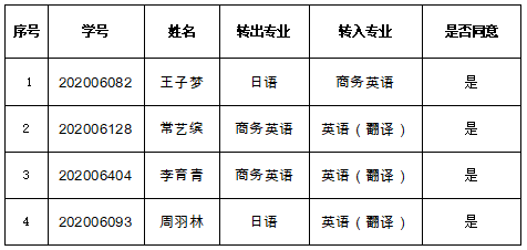 根据教务处《关于2020级普通本科生秋季学期转专业工作的通知》、《太阳成集团tyc234cc普通本科生专业分流与转专业管理办法(试行)》(长大校发[2019]260号)和《2020级本科生秋季学期转专业考核工作方案》,经员工本人申请,资格审核,公司对员工进行了面试考察,现将2020级本科生秋季学期转专业拟接收名单予以公示。公示时间:2021年9月8日 -2021年9月10日。公示期间如有疑问,请咨询太阳成集团tyc234cc教学办公室,电话:0716-8060465,邮箱:302777702@qq.com。