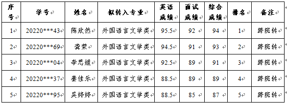 2022级本科生春季学期转专业拟接收名单公示