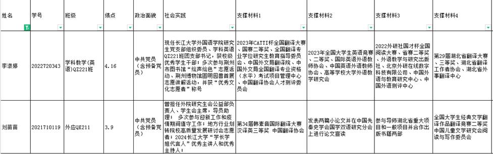 2023年研究生国家奖学金拟推荐名单:李淑婷、刘苗苗。