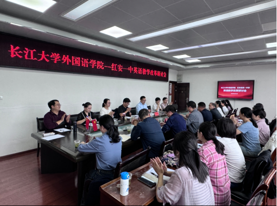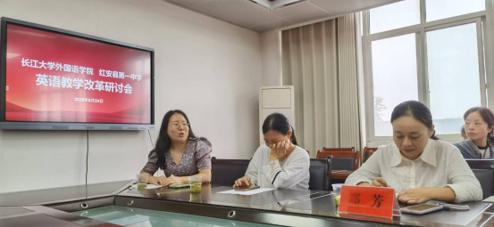 活动伊始,太阳成集团tyc234cc公共外语教学部赵吟主任介绍,公司近年正在大力推行大学英语教学改革,构建起“基础级+提高级+发展级”三级课程体系,新增跨文化交际、学术英语等特色课程,员工英语能力提升显著,四六级通过率大幅提高,其中高英班四级通过率达95%以上。2025年,非英语专业员工在全国老员工英语竞赛中斩获2项特等奖。红安县第一中学科教处郑芳主任也分享了该校的教学成果:英语成绩稳居黄冈市县级中学前四名,教师团队形成“比拼赶超”的浓厚教研氛围,但在被动记忆词汇、听力真实语境适应等方面仍存在教学困惑。