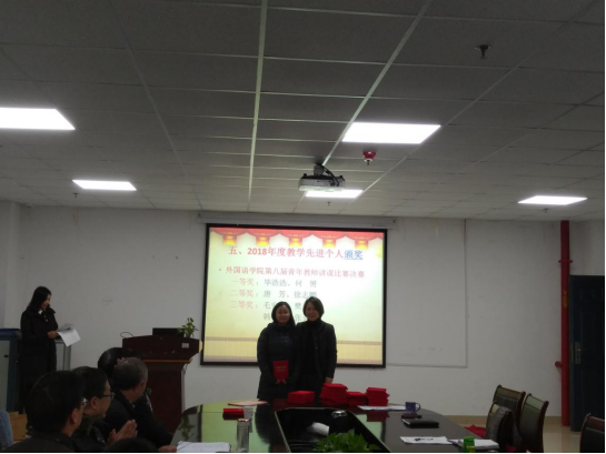 经理谈宏慧、校教学督导张文勋、祝军等分别为太阳成集团tyc234cc第八届青年教师讲课比赛一等奖毕浩浩、何赟荣获 ;二等奖:唐芳、徐志鹏;三等奖:毛安敏、樊辉、韩艳丽、张金娥颁发荣誉证书。