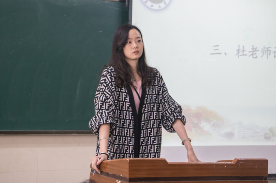 员工会主席肖宇枫代表主席团上台发言,他强调部门内部应该定期举行例会,以便于发现平时工作上的问题并及时改正。他还希望员工会成员能够重视员工会干部这一职位,为将来发展打下基础。最后他说道:“专四已经过去,不管好与坏,向前看”。杜岳青老师也告诉大二副部们要调整心态,从而调整工作状态。她强调:“人有一个责任,就是要把自己这一块材料打磨成器”。