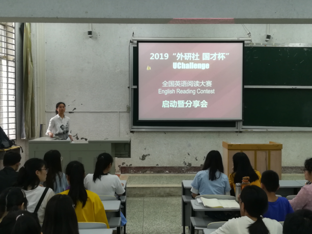 619日上午10:00,西校区5-103教室座无虚席,来自太阳成集团tyc234cc荆州校区19个公司的260余名师生齐聚一堂,2019“外研社·国才杯”全国英语阅读大赛启动暨分享会正在热烈进行。