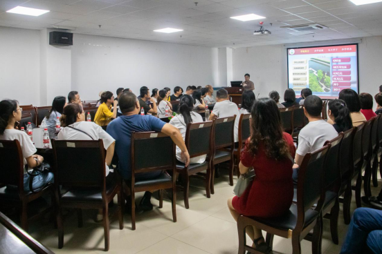 接着,车老师上台自我介绍后,开始向家长们介绍公司的人才培养情况。他从公司的员工工作、员工活动、员工管理等多个层面进行了阐述,为家长们介绍了公司就业行业分布和就业地域分布,并解答家长们较关心的出国留学问题:海外游学项目,交换留学项目,暑期赴美带薪实习项目和自费留学项目等。他特别强调员工的成长成才需要公司、家庭和员工目标一致、齐心协力、共同培养,并殷切希望家长们密切关注孩子的学习态度和过程,孩子的思想动态与心理健康或压力,孩子的寝室生活和交友情况,孩子的课外兼职和安全保障,孩子的理财消费和态度,配合公司开展各种教育和管理工作,及时获悉员工在校学习、生活的基本情况,积极引导员工健康成长!