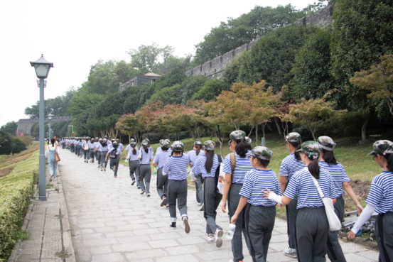总教官详细安排,全体准备就绪后,16:00正式开始环绕古城墙的户外拉练。各班小班主任全程陪同,不让任何同学掉队。一路上微风阵阵,欢歌笑语。拉练虽苦,但是不妨碍同学们苦中作乐,时不时的喊喊口号提一下精神,唱唱歌。或是欣赏沿途的风景,感受湖泊河流环绕的古韵荆州。