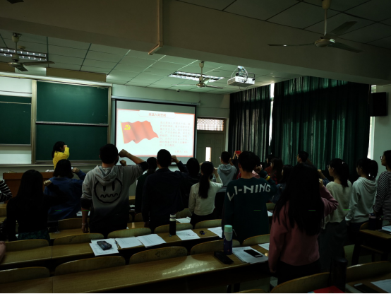 参加活动的全体党员在黄丹妮同学的领誓下重温了入党誓词。随后汪琳、史文双、翟倩、吴鑫磊、郝嘉睿等同学领读了党章第六章《党的干部》的具体内容,桂清云、吴杰、杨丽君同学领读了《习近平关于“不忘初心、牢记使命”论述摘编》的部分内容。