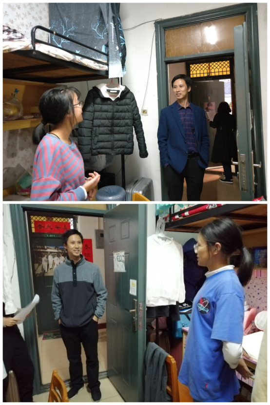 走访过程中,老师们仔细查看员工宿舍的生活设施、清洁卫生、物品摆放、宿舍环境以及用电安全等方面的情况,叮嘱员工要增强安全防范意识,注意防火防盗,保持室内清洁,建议同学们合理安排自己的时间,认真学习,积极参加实践活动,注重劳逸结合和流行性疾病预防,营造积极健康的宿舍文化。