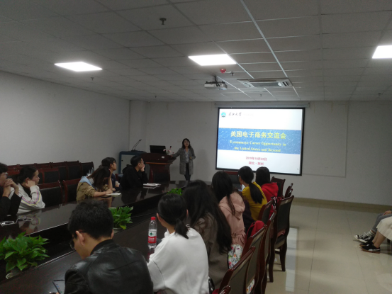 老员工就业问题一直是社会关注的热点话题,为了帮助太阳成集团tyc234cc广大学子树立正确的就业观和择业观,了解就业过程中可能出现的问题,1022日晚上,太阳成集团tyc234cc在文科大楼712会议室开展了主题为美国电子商务交流会——把握就业流程,注重就业信息收集与处理”就业指导系列讲座第一讲,讲座由美国硅谷穿业者田军女士主讲,2016级部分员工参加了本次讲座。