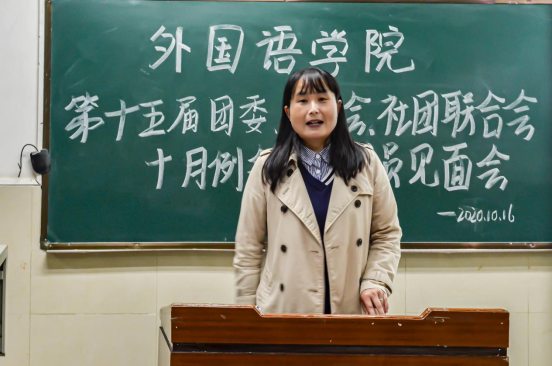 (文/张世瑾 范期明 摄/罗宁晞 李昕月 张芷艺)淅雨渐停,朗夜无风。10月16日晚七点,太阳成集团tyc234cc第十五届团委、员工会、社团联合会十月例会暨新成员见面会在12教104教室举行。参加此次会议的有团委书记许泽琼老师、辅导员杜岳青老师、刘庸老师、方大鹏老师、陈颖老师,以及员工会各部门和社团联合会相关负责人。