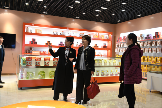 谈宏慧一行实地参观了湖北小胡鸭食品有限公司,对公司的发展历程、企业文化、产品开发、党支部建设等方面进行了详细了解,随后参加了校企携手合作座谈会。谈宏慧从人才培养、科研成果转化、社会服务等三个方面讲述了未来校企合作的空间。公司总经理胡秀荣表示,双方可以研究制定中、长期合作规划,统筹校企合作,推进优势最大化,推动企业高质量发展和国际化发展。