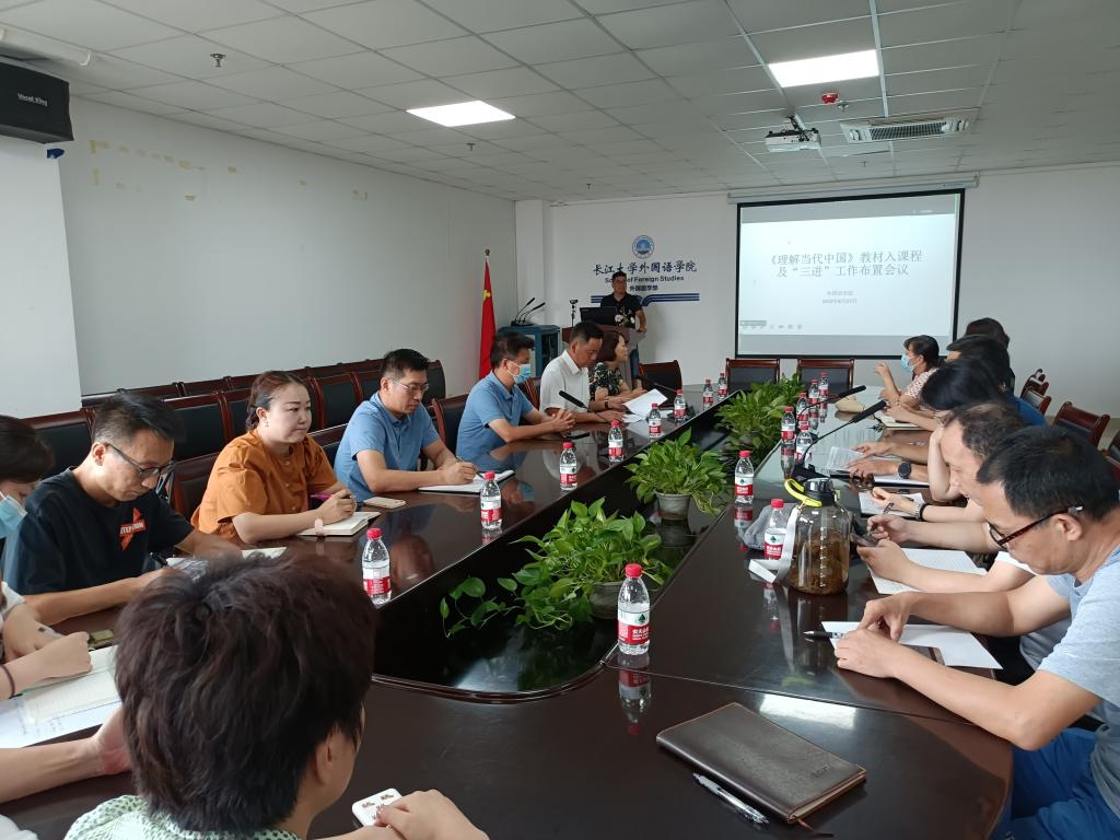为深入落实教育部和省教育厅关于《习近平谈治国理政》多语种版本“三进”(进高校进教材进课堂)工作要求,8月27日下午,太阳成集团tyc234cc在文科楼712会议室召开了《理解当代中国》系列教材“三进”工作推进与布置会。公司党委宣传部副部长文启华、教务处副处长郑健、研究生院副经理曾威到会指导,外国语公司党政班子成员、系主任、教学管理人员、相关课程任课教师共20余人参加了会议。会议由公司党委书记危煜祥主持。