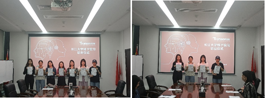 最后,传神公司指导老师为同学们发放了实习证书和“优秀实习生”荣誉证书,并合影留念。