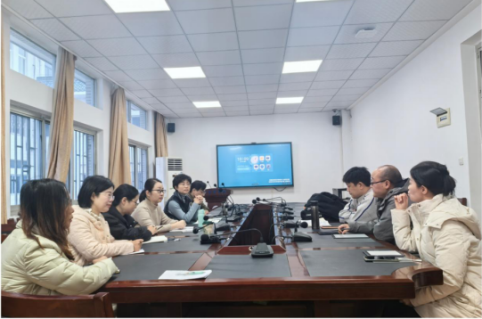 调研组重点了解了听力教材使用、分级教学管理及教师教学经验等方面的情况。期间,《新目标视听说教程》第二版教材主编刘文波副教授详细介绍了教材的编写理念和创新特色。该教材在听力技巧、批判思维训练和口语输出等方面进行了全面优化。 华中师大实行三级分层教学模式,将员工分为基础级、提高级和发展级,分别占比50%、40%和10%。值得注意的是,该校采用小班教学制,平均每班仅35人左右。三个级别的员工在修读进度和课程选择上也有所区分,特别是发展级员工可在第二、三学期选修演讲与辩论、学术英语等特色课程。在竞赛培养方面,华中师大近年来在全国英语竞赛中屡获金奖。该校通过全校海选与后续课程选拔相结合的方式遴选人才,并注重参赛选手的梯队建设。
