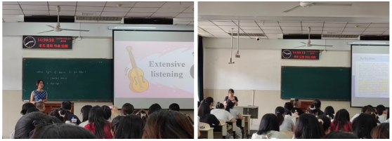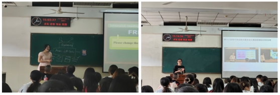在阅读课型展示环节,张斯雨同学凭借规范的板书设计和标准的语音语调,生动诠释了语言教学工具性与人文性的统一;王琪同学则通过清晰的授课思路和深入的文本解读,创新性地运用思维导图呈现课文内容。钟传银老师在高度评价两位同学教学基本功的同时,特别强调现代阅读教学应当融入分层教学理念,重点培养员工skimming等核心阅读技巧。