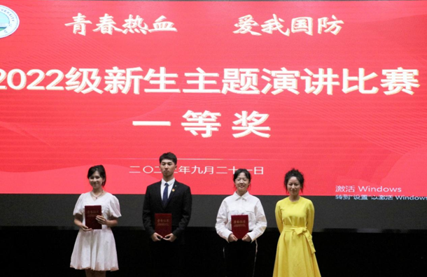 9月21日晚,2022级新生“热血青春·爱我国防”主题演讲比赛于12教405报告厅举行。2022级新生张美晨同学代表公司参赛,并从20多名选手中突围,荣获一等奖。