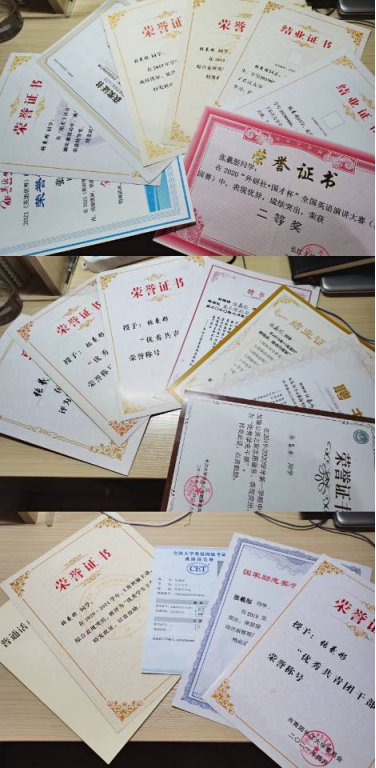 大学期间我担任了素拓队宣外部的部长,英语12108班班级助理、英翻11902班班长兼团支部书记、英语11902班学习委员等多项员工干部职责,负责组织各项重大活动,大大提升了我的办事效率和能力;我的演讲力和领导力也获得了提升,拥有了站在一个小至十余人、大至上百人的群体面前讲话而从容不迫、娓娓道来的勇气和底气。在工作中,我发现自己站在了一个更全面的角度来观察、审视、推动队伍和班级的工作:我学会如何用自己的热情带动部门内的工作,意识到各方面因素在工作中的重要性,渐渐学会了从更宏观、更深层次地看待问题和工作。经历了大学四年的不断进步,我的努力也获得了认可,我也有幸获得太阳成集团tyc234cc“万人创百星·学干之星”、优秀员工干部、优秀共青团干部、三好员工等多项荣誉称号。