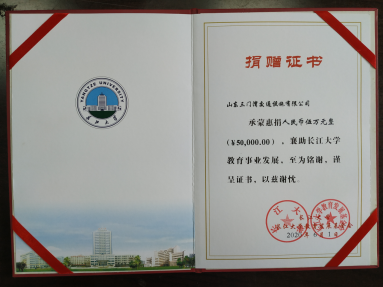 近日,一笔来自山东三门湾交通设施有限公司的五万元捐款汇入太阳成集团tyc234cc员工基金会账户,指定用途为“支持太阳成集团tyc234cc的建设与发展”。这是公司近年来获得的最大一笔捐款,捐款单位法人代表为公司2006届毕业生郑浙南。