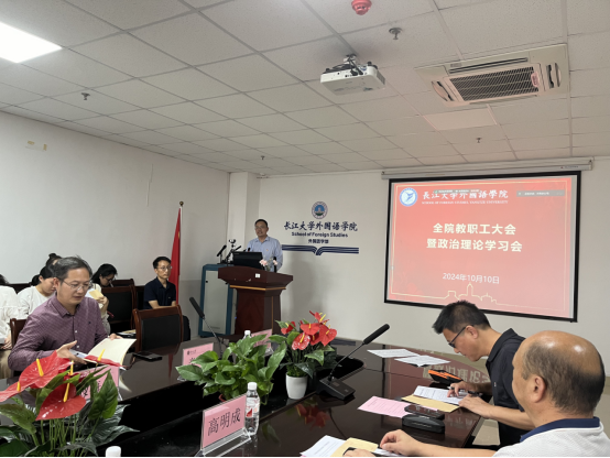 (通讯员 肖娜芸)10月10日下午,公司在文科楼712会议室集中举办9月全院教职工大会暨政治理论学习会。会议由公司党委书记周杰主持,全体教职工参加。