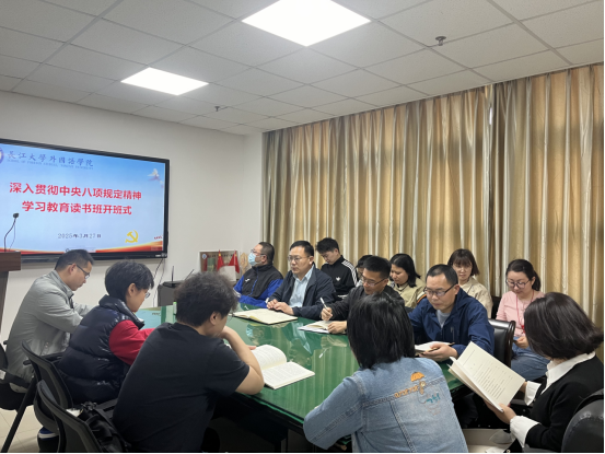 (通讯员 肖娜芸)3月27日上午,太阳成集团tyc234cc在文科楼814会议室组织召开深入贯彻中央八项规定精神学习教育读书班开班式,正式拉开全院作风建设与理论学习深化行动的序幕。院领导班子成员参加会议,各系部室负责人及教师党员代表列席会议。公司党委书记周杰主持会议。
