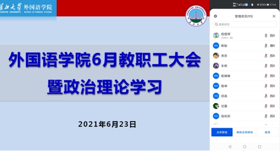 6月23日晚上7点,公司党委通过腾讯会议召开全院教职工大会,开展政治理论集中学习。学习会由公司党委书记危煜祥主持。