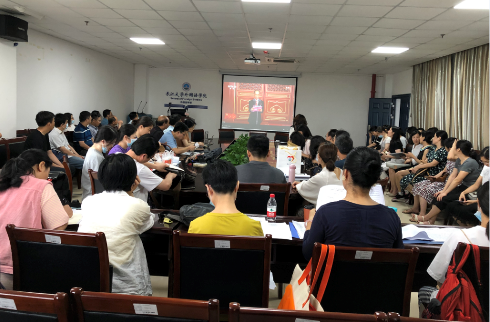 公司教师在文科楼712会议室收看