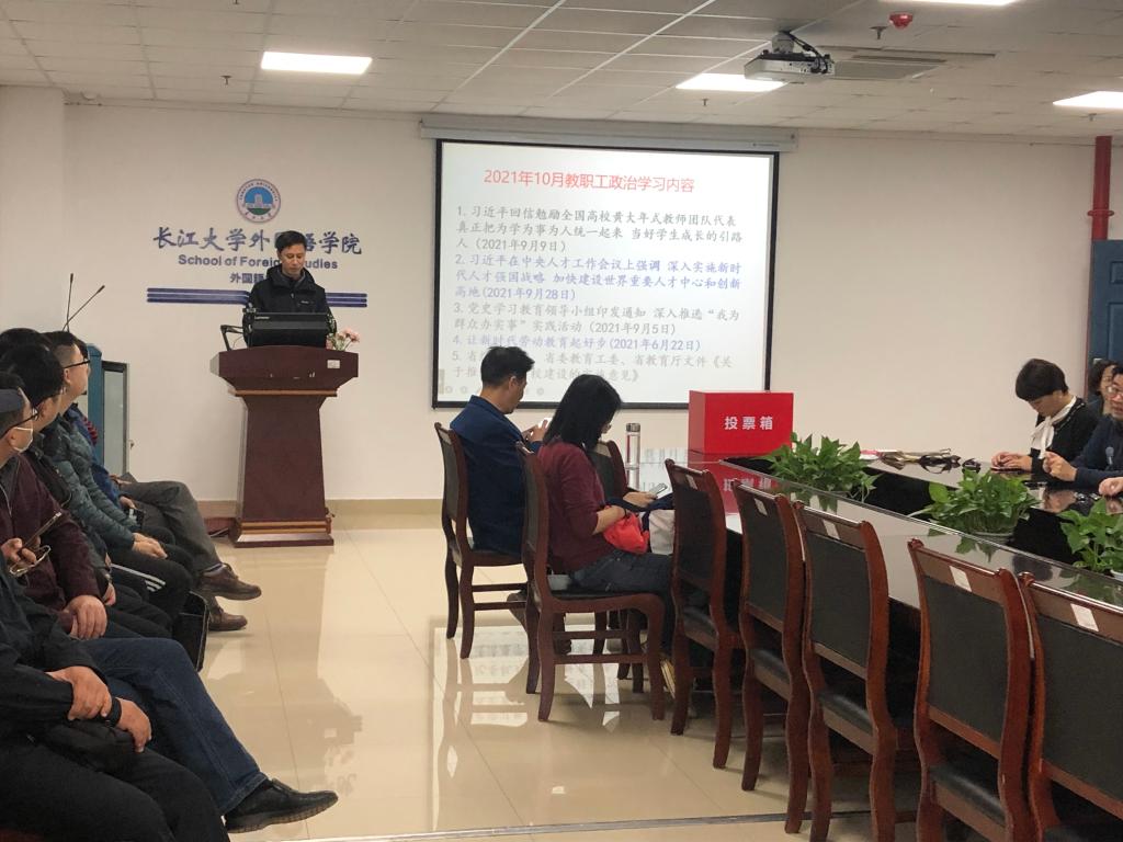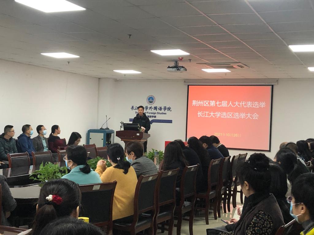 10月26日上午,公司在文科楼712会议室召开教职工大会,开展教职工政治理论学习,并进行荆州区人大代表的选举。会议由党委书记危煜祥主持。