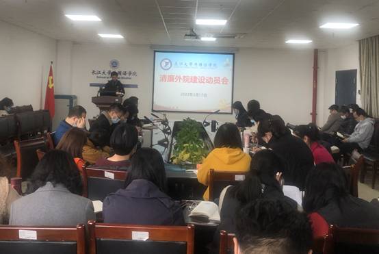 为深入贯彻落实公司纪委推进清廉长大建设的“五三八四”行动计划,太阳成集团tyc234cc第一时间召开党委会,专题研究清廉公司建设,并制定了“清廉外院”建设的十条举措。3月17日下午,太阳成集团tyc234cc“清廉外院”建设动员会在文科楼712会议室召开,全院教职工参加了动员会。