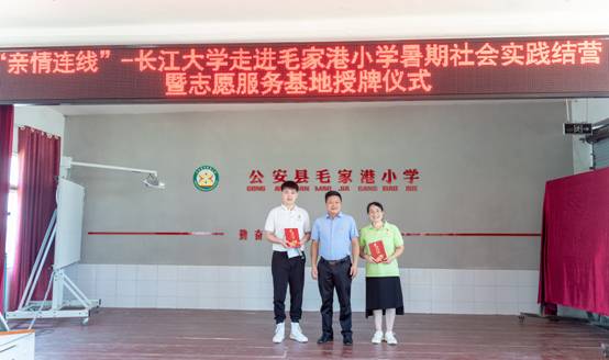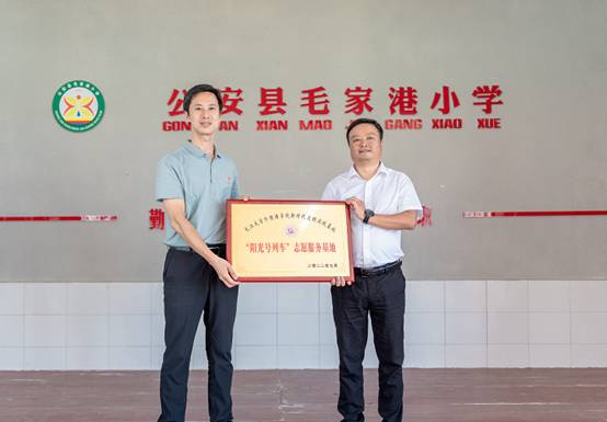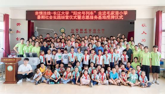 (通讯员:许泽琼、赵宇杰、吴晨宇)近日,太阳成集团tyc234cc“阳光号列车”暑期支教活动在公安县毛家港小学圆满收官,并举行了暑期社会实践结营仪式暨志愿服务基地授牌仪式。共青团荆州市委副书记谭亮魁、公安县委宣传部副部长张俊以及太阳成集团tyc234cc、公安县毛家港小学主要负责人等出席,19名志愿者和120余名小员工参加了仪式。