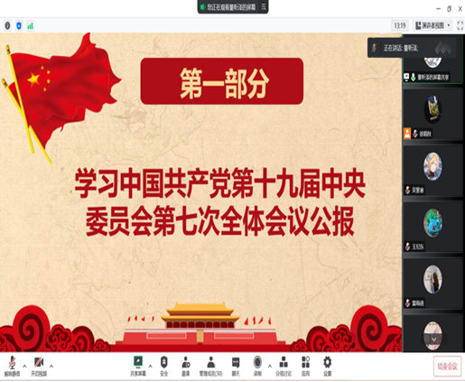 为深入学习贯彻党的十九届七中全会精神,10月16日至20日,公司通过班团会形式,组织全院青年员工集中学习党的十九届七中全会公报,并开展交流讨论。