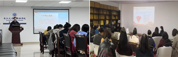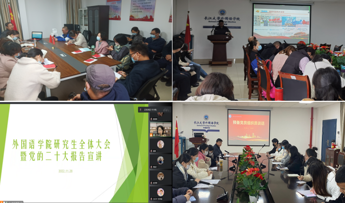 11月24日至28日,副经理谢家成、副经理彭沂、副经理付小秋分别为日语系教师和行政人员、公外教学部教师、全体研究生宣讲了党的二十大精神。党委副书记程坤在与预备党员谈话时也宣讲了党的二十大精神,进一步加深了预备党员对党的认识。