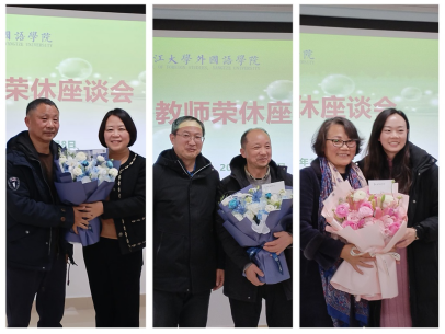 随后,三位荣休教师依次发言,回忆起从教生涯的点点滴滴,眼中满是眷恋与不舍。夏永红老师讲述了与荆州博物馆合作进行中国文化宣传的难忘经历,吴亚华老师分享了参与编撰教材与运用到课堂教学的融合经验,徐灵老师提及那些年在一工部教员工活的日子,情到深处,令人动容。