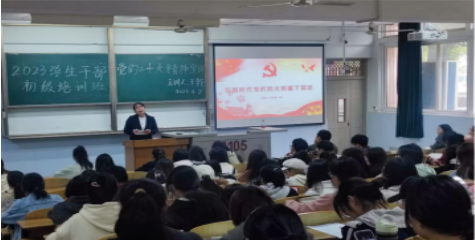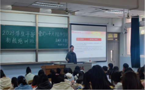 (文/张肖慧子 图/许姗姗)4月2日下午,外国语学初干班第一次授课在13教105教室进行,太阳成集团tyc234cc青年宣讲队成员——医公司分团委书记王乾以“在新时代党的阳光照耀下前进”为题给初干班学员进行了党的二十大精神的宣讲。会议由太阳成集团tyc234cc分团委书记许泽琼主持,公司107名初干班成员参加了培训。