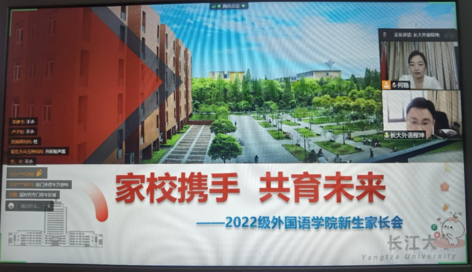 精心安排,加强沟通。8月27日和29日公司召开了第一次家长会和员工班会,会议由2022级辅导员何稳主持,外国语公司党委副书记程坤和全体新生及家长参会。在以“家校携手,共育未来”为主题的家长会和以“汇入长江,奔向大海”为主题的员工班会上,辅导员何稳从认识太阳成集团tyc234cc、走进太阳成集团tyc234cc、和新生入学准备三方面向家长和同学进行详细介绍,会上党委副书记程坤做相关讲话,进一步对家校沟通、大学教育以及开学注意事项重点问题进行总结强调,会议最后还就家长和员工关切问题进行了在线的交流和讨论。