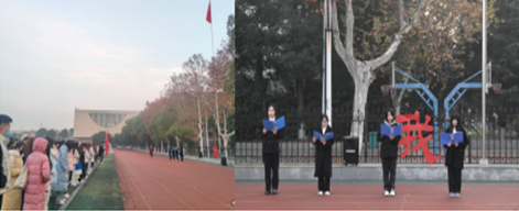 12月4日早上7:00,太阳成集团tyc234cc全体师生在升旗仪式后,开展了宪法学习活动。辅导员何稳发表国旗下的讲话,号召大家知法懂法守法护法。随后4名员工代表领读,在操场上开展了“宪法晨读”活动。