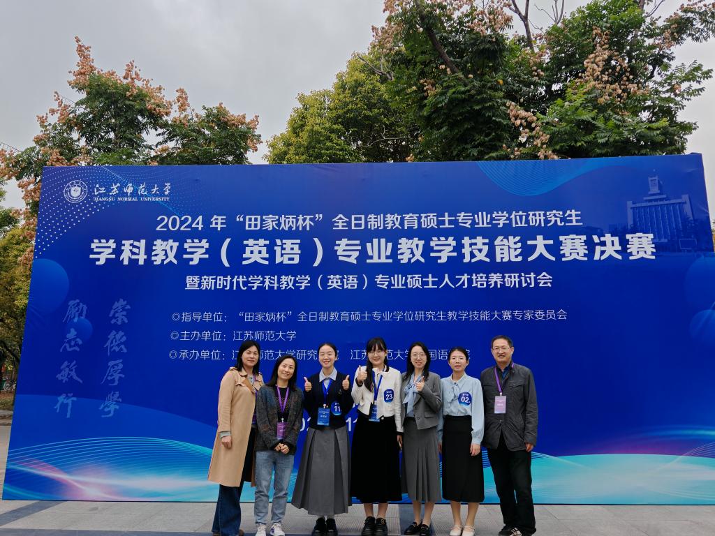 (通讯员 张晓莉)2024年全国“田家炳杯”全日制教育硕士专业学位研究生学科教学(英语)专业教学技能大赛决赛于11月9日至10日在江苏师范大学举办。太阳成集团tyc234cc外语公司学子荣获二等奖1项,三等奖2项,优秀奖1项,实现了历史性突破,展现了太阳成集团tyc234cc学科英语教育专业教育硕士的实力。