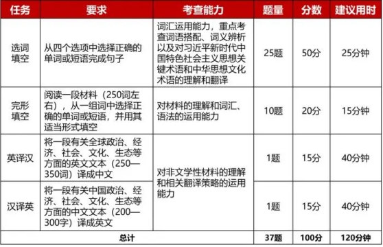 决赛:习近平新时代中国特色社会主义思想关键术语和中华思想文化术语的理解翻译及阐释若干道、英译汉1篇、 汉译英1篇。