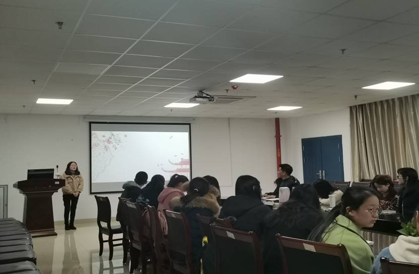 首先由黄珊珊同学向大家做报告,她的报告主题是:李白诗歌在英语世界的译介。黄珊珊同学将李白诗歌对外传播分为两个阶段:发轫期(18世纪-1915)和发展期(1915-1947),她先解释了分期的依据,然后分别对两个时期译介主体的身份、译介形式、译介途径进行对比,最后跟大家分享了研究的成果。殷容容同学的报告主题是:生态翻译学视角下荆州博物馆宣传折页的英译评析。她从语言维度、文化维度、交际维度三个方面讲解了翻译的适应性转换,并做了相关案例分析。王旭同学的报告主题是:网络媒介时代《楚辞》国际传播思考,她先对相关概念进行了讲解,然后从李子柒和舌尖上的中国两个以美食传播为主题的例子进行研究,总结出《楚辞》传播中应该注意的问题。
