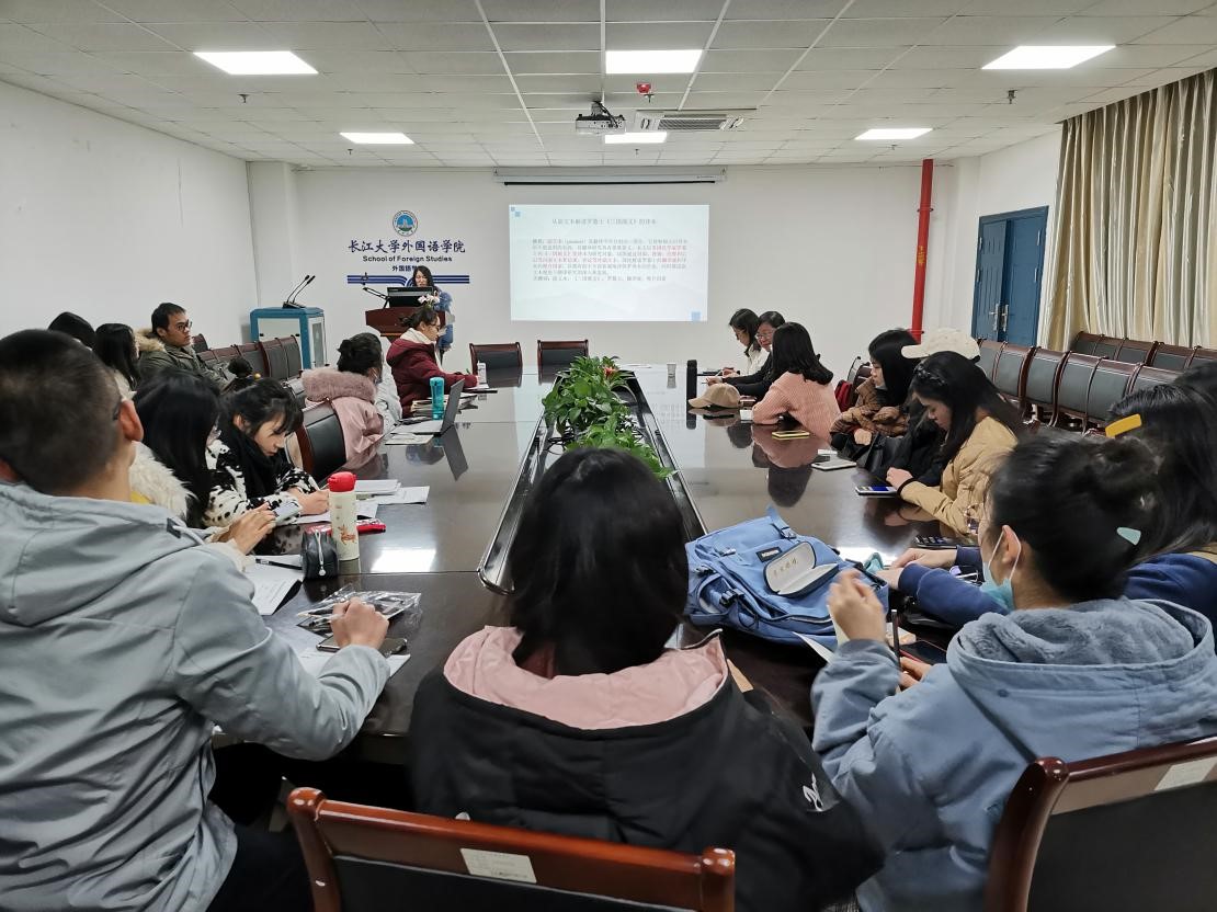 第一位主讲人为方佳同学,她的报告主题是:从副文本解读罗慕士《三国演义》的译本。首先,她简要介绍了《三国演义》的地位及价值和《三国演义》的英译史。随后,她结合译文中的致谢和注释等内副文本,译者访谈、一些著名汉学家的评价以及国内一些学者的评论等外副文本,从三个方面分析了罗慕士的翻译观。同时她还从副文本解读了译本的推介因素,以期对典籍英译提供借鉴。最后,方佳同学反思了自己在构思论文时出现的问题。第二位主讲人傅琴的报告主题是:基于语料库的《三国演义》译入译出文本风格对比研究——以三个全译本为例。傅琴同学自建语料库,以邓罗和罗慕士的两个译入和虞苏美的译出译本作为研究对象,采用单语类比的方法以形式参数、综合参数以及围观参数为切入点进行翻译风格的对比研究。她向同学们介绍了自建语料库的统计结果与数据分析,最后分析了这三个译本风格差异的动因。汇报结束后,同学们积极提问,两位主讲人也对大家的疑问做出了详细的解答。