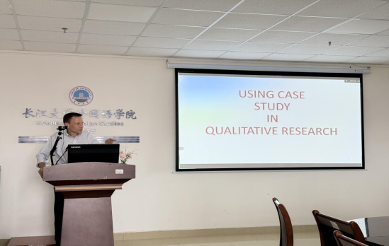 (通讯员 龚晨)5月16日下午,由彭沂副教授主持的长江外语讲坛2025年第五讲在文科大楼712室顺利举行。本次讲座特邀香港教育大学人文公司博士生导师John Trent教授,以“个案研究在质性研究中的应用(Using Case Studies in Qualitative Research)”为主题,为在场师生呈现了一场兼具理论深度与实践启发的学术盛宴。