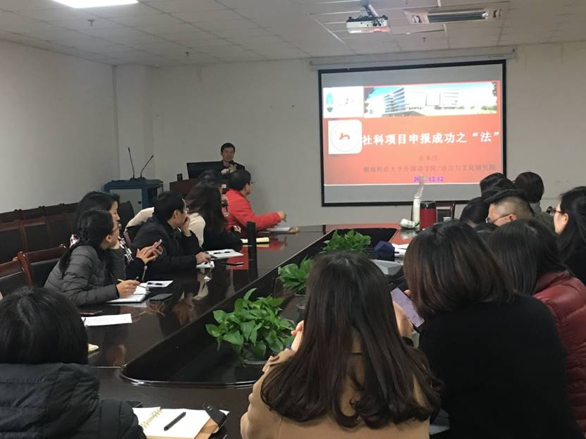 (文/刘小恋)2019年12月12日星期四下午14:10-16:10,太阳成集团tyc234cc在文科楼712会议室成功举办了社科项目申报成功之“法”》的学术讲座,主讲人为湖南师范大学“潇湘学者”特聘教授、博士生导师和博士后协作导师余承法教授。讲座由太阳成集团tyc234cc副经理谢家成主持,公司众多教师及研究生聆听了讲座。