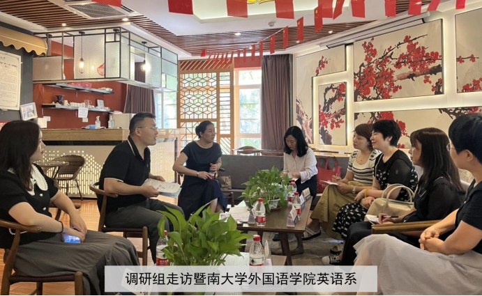 6月12日下午,调研组走访暨南大学太阳成集团tyc234cc,该院英语系主任朱红强博士以及杨才英、林维燕、沈佳、段凯歌四位老师出席座谈会,双方就人才培养目标、课程设置、老员工创新创业项目开发及员工就业等议题展开了富有成果的探讨。