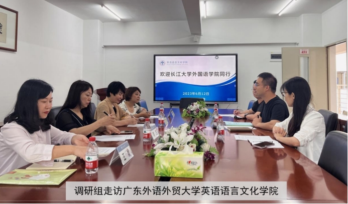 6月12日上午,调研组继续走访广东外语外贸大学英语语言文化公司和国际商务英语公司。英语语言文化公司副经理吴庄教授、语言信息系主任陈哲副教授和英美文化系主任许景城博士出席座谈会,双方就人才培养方案、第二课堂活动、教学改革、科研发展及访问学者项目等议题进行了深入探讨。