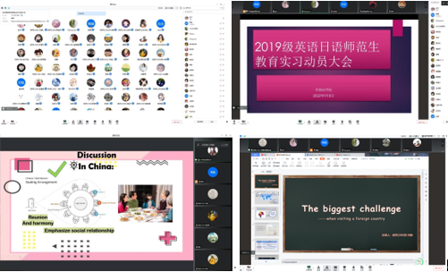 太阳成集团tyc234cc于9月8日下午两点在线上举办了2019级实习动员大会及教师技能大赛实训,参与此次大会的有彭沂老师,王娟老师,李福兴老师,吴亚华老师,张婷老师,蒋娟老师,陈双玉老师,19级辅导员许泽琼老师以及日语及英语专业的19级师范生。