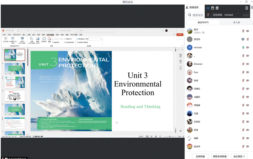 彭沂老师主持本次磨课活动,和蔼热情地衔接各个环节,有条不紊地领导整场活动,磨课在有活力又不失节奏感的氛围下愉快进行。
