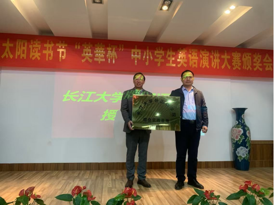 (通讯员 王娟)11月9日下午,荆州英华书院举办“第27届小太阳读书节‘英华杯’中小学英语演讲大赛颁奖会”。公司党委书记周杰、英语系主任王娟及卓越师范班的余桦、杜蓉、罗彤员工受邀参会。荆州市图书馆副馆长汤军、荆州英华书院董事长王景辉等领导及家长、员工代表也参与了此次盛会。